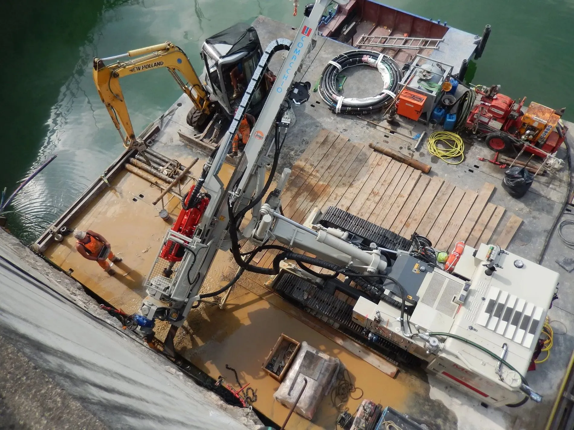 L’intervento prevede l’esecuzione di nuovi tiranti in sottofalda da pontone, e la verifica di quelli provvisionali in funzione da parecchi anni.